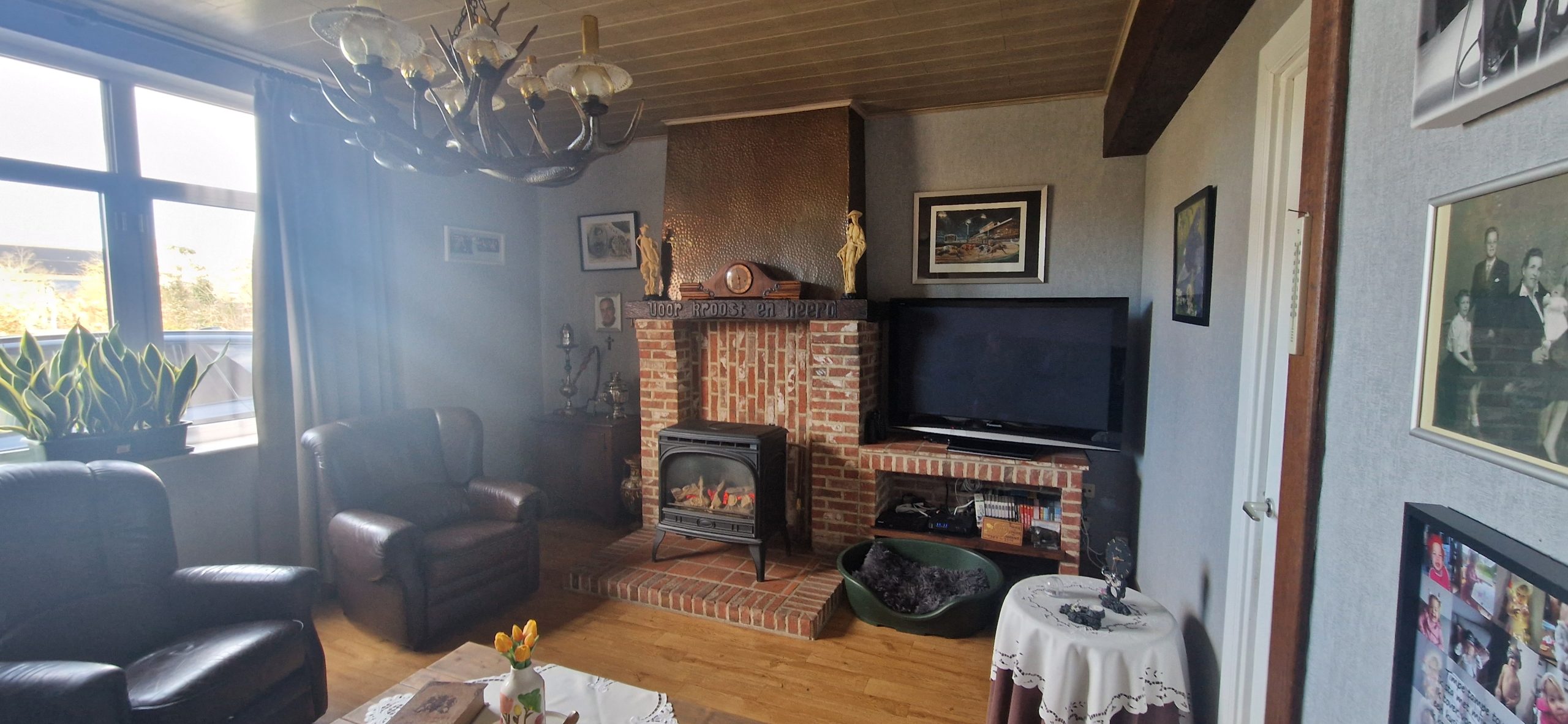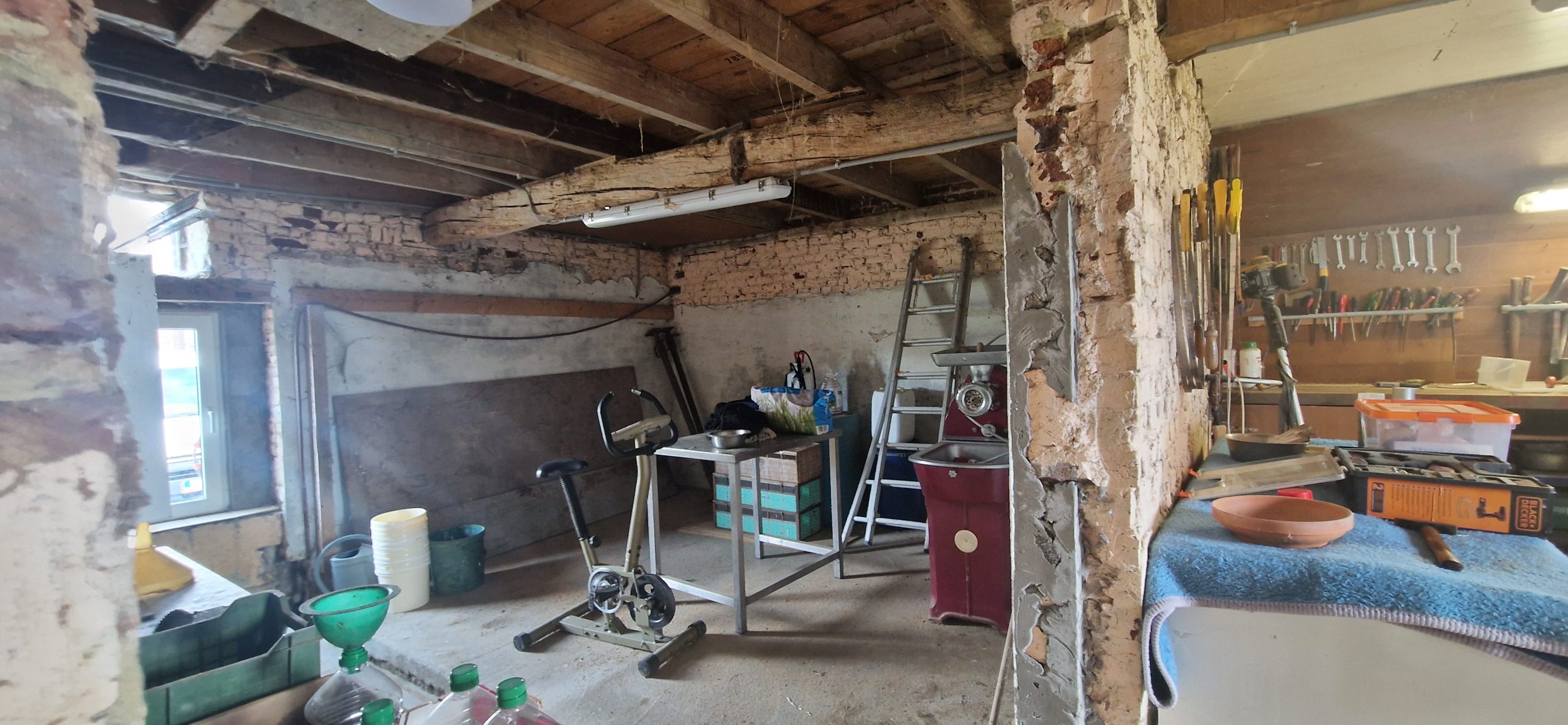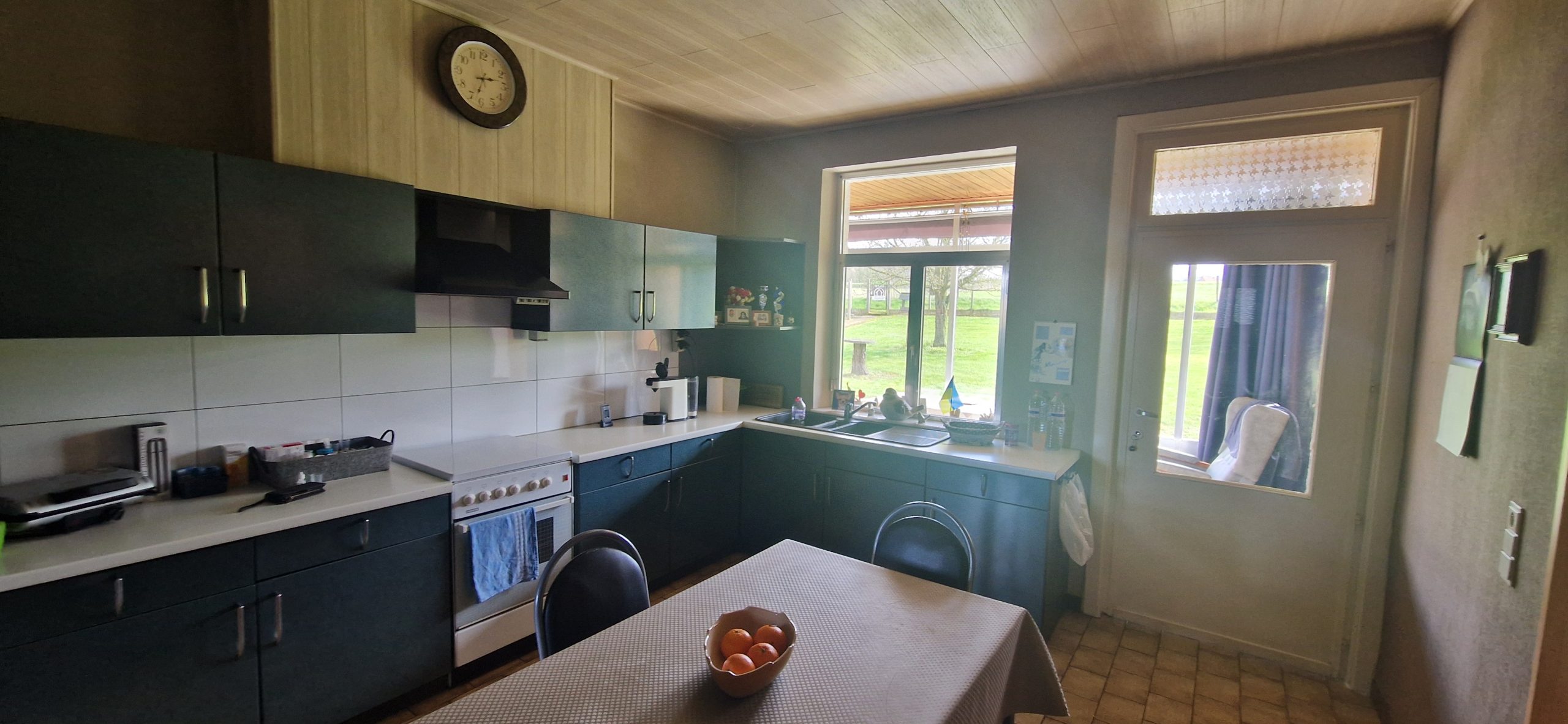 De hoeve met vier slaapkamers, twee badkamers, … Gezellige leefruimte met veranda. Voorzien van kelder. De eigendom omvat aansluitende stallingen en schuren.